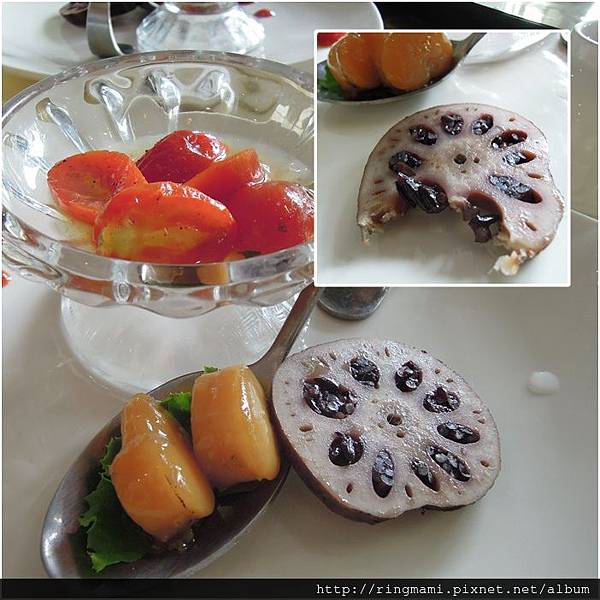 醃製的小蕃茄酸酸甜甜 干貝 紫米蓮藕